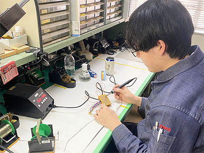 技術部に所属しています。メインの仕事は製品開発になります。他にも耐久試験・電子回路設計・治具作成、品質管理など多くの業務に携わっています。