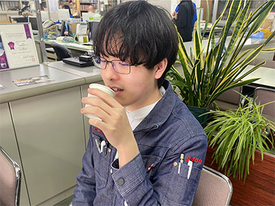 | 12:45 | 回路設計 | 新しい製品のアイデアを形にするために、回路図を作成したり、時には改良のための設計変更をしたり。 集中していると、あっという間に時間が過ぎちゃいます! |