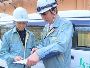 最初は簡単なメンテナンス作業からはじめて、慣れてきたら修理作業も行います。最終的には一人で点検・修理に回れるように、少しずつ段階を踏んでじっくり学んでもらいます。