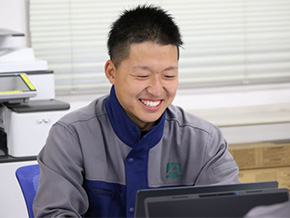 | 17:30 | 退社 | 早く帰れる日は定時で帰ります。 退社後は先輩社員とゴルフの練習に行く日もあれば、早く家に帰ってお父さんとして2児の息子と遊ぶ日もあります。 |