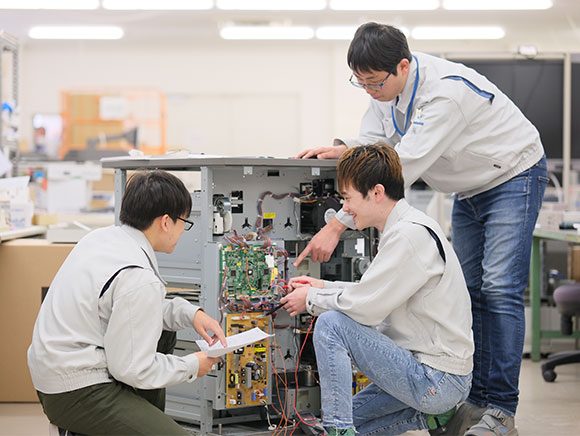 私は複写機周辺機器の設計開発に携わっています。周辺技術部は、ハード・メカ・ソフトの3つのグループに分かれていて、私は基板やハーネスを設計するハードを担当しています。コンビニなどに置いてある複写機周辺機器のため、自分が作ったものを実際に目にすることができたときはやりがいを感じます。