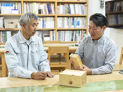 現場監督として、新築・リフォームの現場全体の管理、進行を担当します。具体的には、大工さんや業者の方々との打合せ、図面のチェック、基礎図面作成、材料発注、工事発注などの業務があり、打合せや引渡半年点検などで施主さまとの関わりも多い仕事です。
