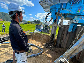 振動させながら杭材を打ち込むパイラーという機械の操作をメインに行っています。