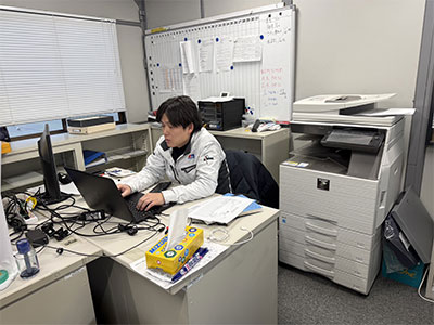 | 7:30 | メール確認、朝礼資料作成 | メールの確認を行い、当日の作業・資材搬入計画について確認します。 |