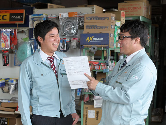 研修後は各部署に配属され、それぞれの部署に合った研修をOJT(On-the-Job Training:職場で実際の業務を通じて行われる実地研修)で行っていきます。研修をしながら業務に必要な資格を取得したり、必要であればセミナーなども受講することができます。業務に関連する資格については、取得費用は会社が全額負担します。メーカーの方などに来ていただき、製品に関する知識やスキルを深める一般研修も行っています。