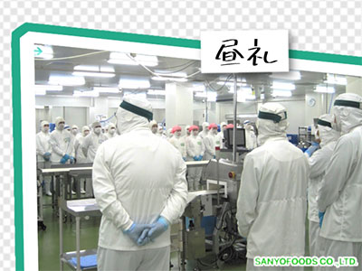 | 13:00 | 昼礼 | パートさんに対して、現場で意識して取り組んで欲しい製造のポイントや注意事項について、情報発信を行います。全員が一丸となって良品の製造に協力し、品質向上に努めています |
