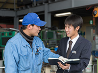 | 17:00 | 帰社・事務処理 | 日報を書いたり、お客さまからの注文の見積を作成。相談しやすい先輩方で、難しい案件を抱えるたびに相談にのってくれ、ミスをした時もカバーしてくれるので、心強い。 |
