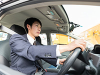 営業車で自分の担当する呉地区のエリアのお客さまを訪ねる。お客さまと接する時は常に笑顔を心がける。