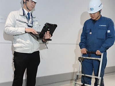 | 8:30 | 現場作業 | タンク内に入り安全第一で作業をします連続板厚測定装置(UDT)を使ってタンク底板等の板厚を測定します |